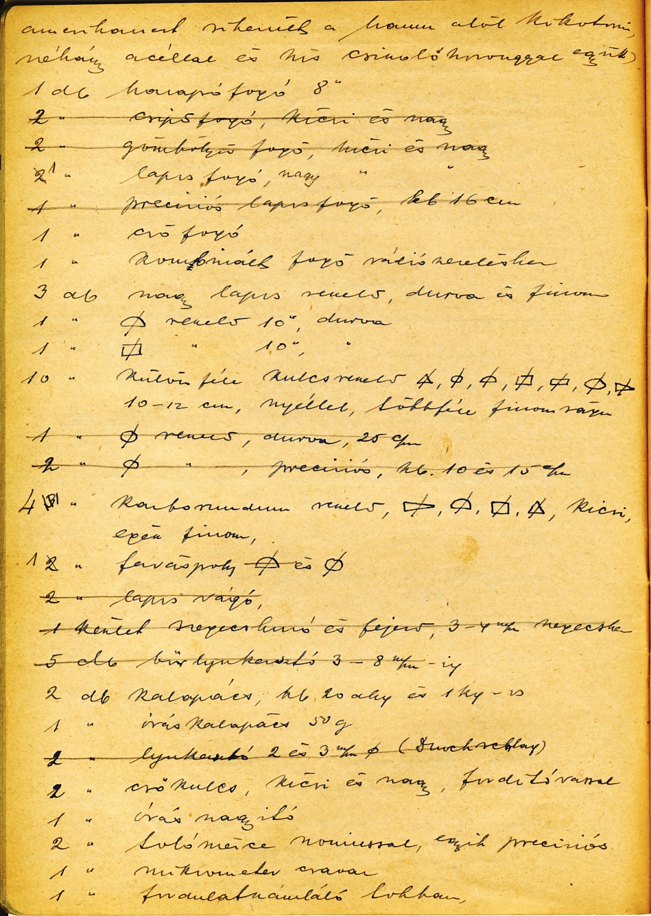 Elpusztult szerszámaim jegyzéke